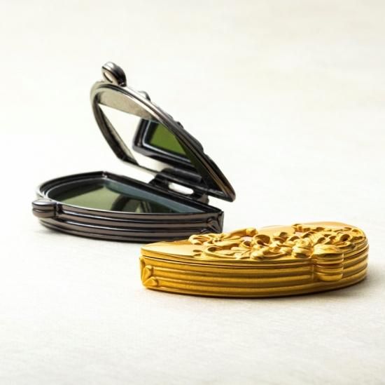 江戸時代に携帯用として、それぞれが粋にあつらえた「紅板」を、現代風にアレンジしました。半月型のコンパクトには、四季折々の美しい景色を、雪輪、月、菊で表現しています。