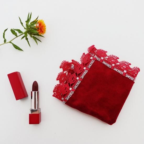 唇を“とりこ”にする至福のなめらかルージュ「キスミー フェルム ルージュアクト<トリコタッチ>」の紅ミュージアム限定カラーと、横浜元町の老舗レース専門店「近沢レース店」とのコラボレーション タオルハンカチをセットにしました。
